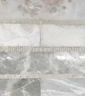 Mármol blanco gigante pulido 40 x 6,5 x 1 cm, con juntas de 1,5 centímetros.