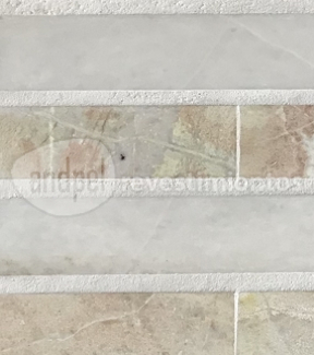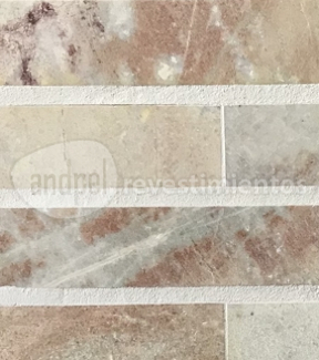Mix de mármol rosso bombay 40 x 6,2 x 1 cm y mármol blanco gigante 40 x 6,5 x1 cm, con junta de 1,5 centímetros.