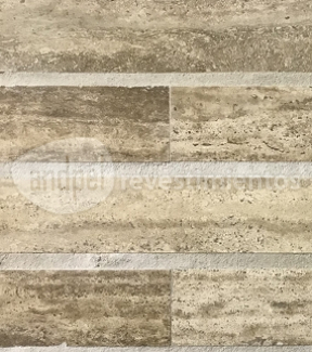 Mármol travertino roble pulido y estucado a la veta 30 x 6,4 x 1 cm, con junta de 1,5 centímetros.